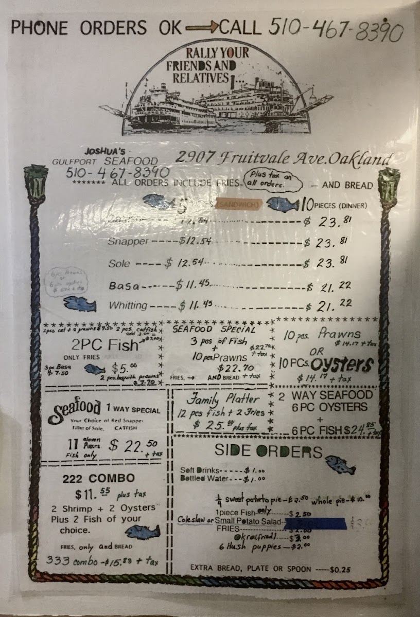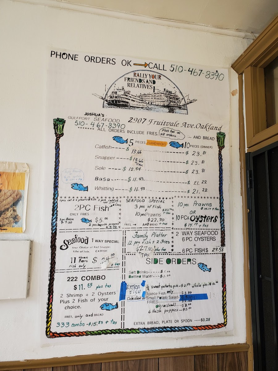 Hot Fish/Joshuas Gulfport Seafood Menu